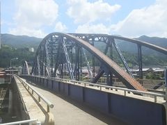 大正12年に吊り橋として架けられ、昭和6年に現在のような鉄骨板橋に改築された。高山線下呂駅の開業に合わせてのことだったらしい。下呂駅で降りた観光客を、対岸の飛騨街道に渡し、湯之島温泉郷に容易に行けるようにする役割を担っていました。