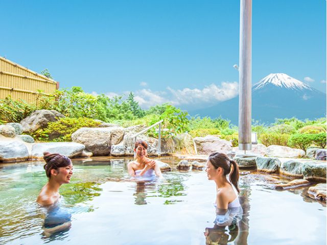 ・ 世界文化遺産となった富士山を眺める絶好のロケーションの露天風呂と良質な自家源泉を存分にご堪能ください♪