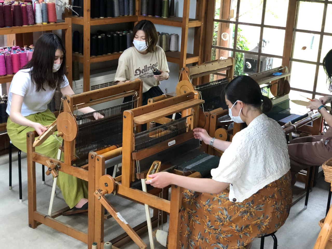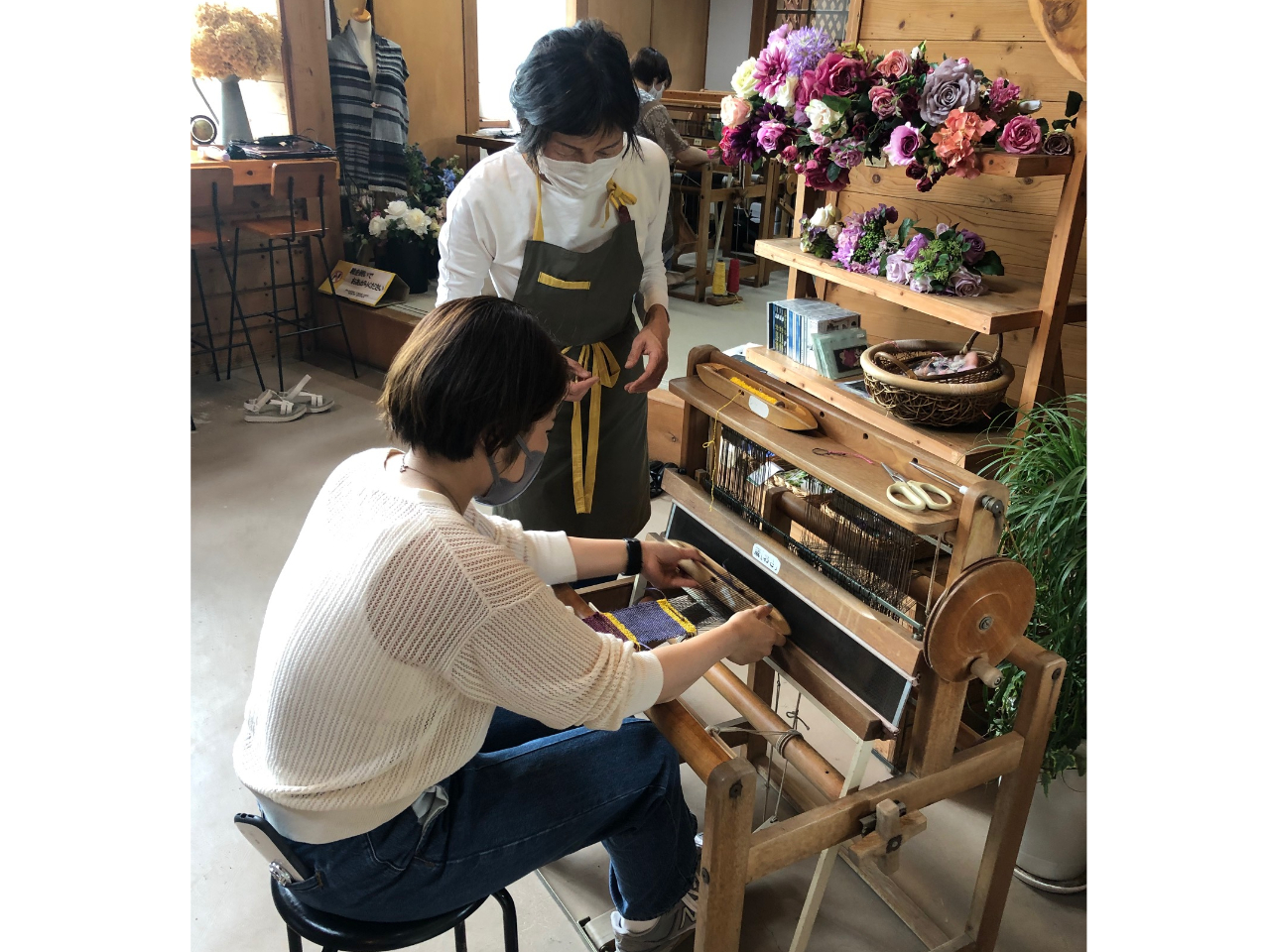 色を好きなだけ選んで自分だけの作品を作れる機織り体験の施設。丁寧な指導を受け、徐々にできあがっていく行程につい夢中になってしまいます。