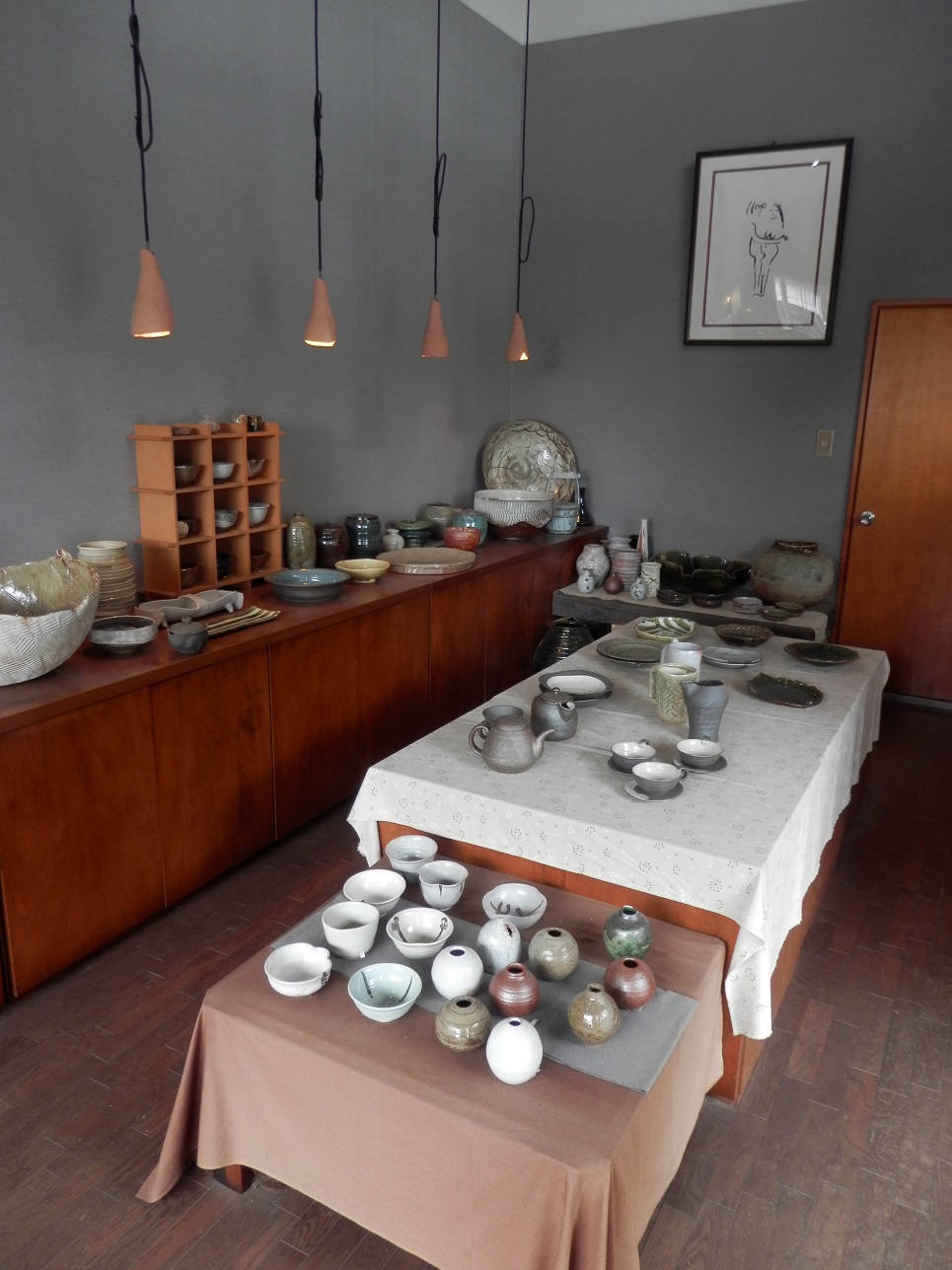 本格的な窯で焼きあげます♪焼成前の作品がずらり。