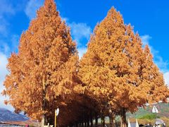 メタセコイアが黄色に染まる秋は素晴らしい眺めなんでしょう。残念ながら紅葉にはすこし早かった。近くの施設で食事もできます。果樹園があるのでソフトクリームも美味しいです。
