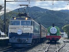 新金谷へ向かって電気機関車が引っ張りトーマスが連れ去られるかのような光景はなかなかシュール。