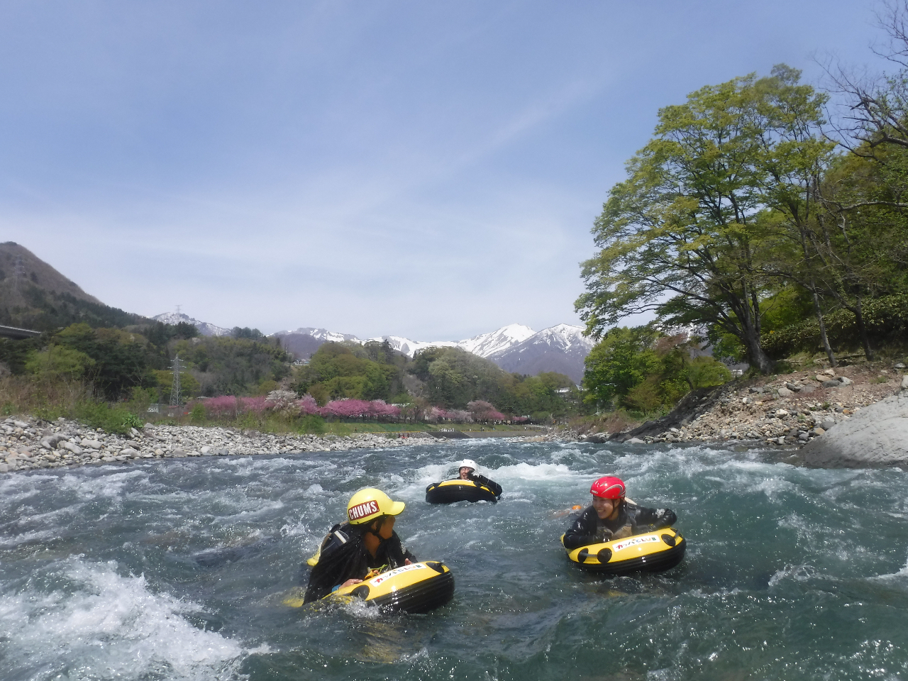 「ラフティング」春は雪解け水で増水した激しいラフティングが楽しめ、距離も伸びるので春限定の1日コースも開催!
