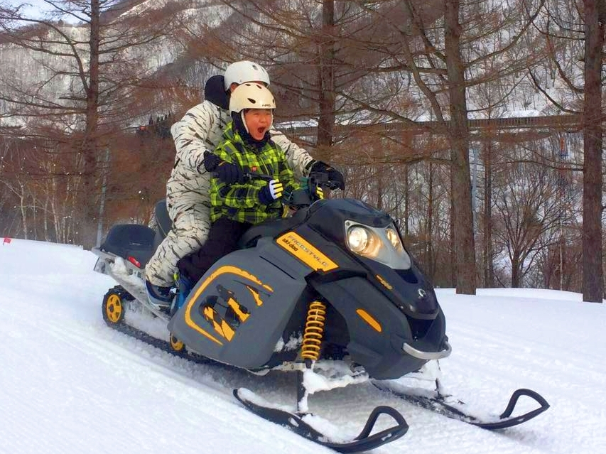首都圏からも好アクセスの苗場スキー場で体験できるファミリーで楽しめるスノーモービルツアーです!