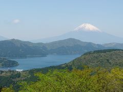 奥湯河原温泉宿泊後にターンパイクに立ち寄りました。絵に書いたような富士山と芦ノ湖。反対は海、大島。絶景スポットです。