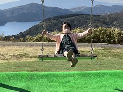 景色がとてもいい。ブランコに乗り富士山をバックに写真を撮るのに、並びました。喫茶のアップルパイも美味しい。トイレからの富士山も綺麗。