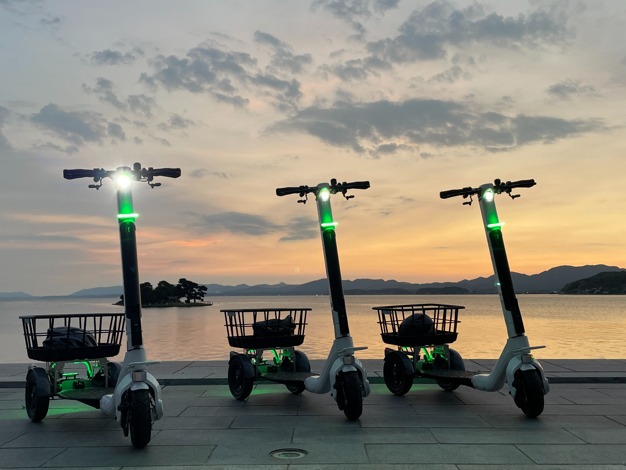 公道を走れる“ 立ち乗り三輪モビリティ” で夕日鑑賞スポットまで移動しましょう!