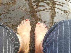 楽しみにしていた足湯で、幸い人が少なくすぐに入れました。