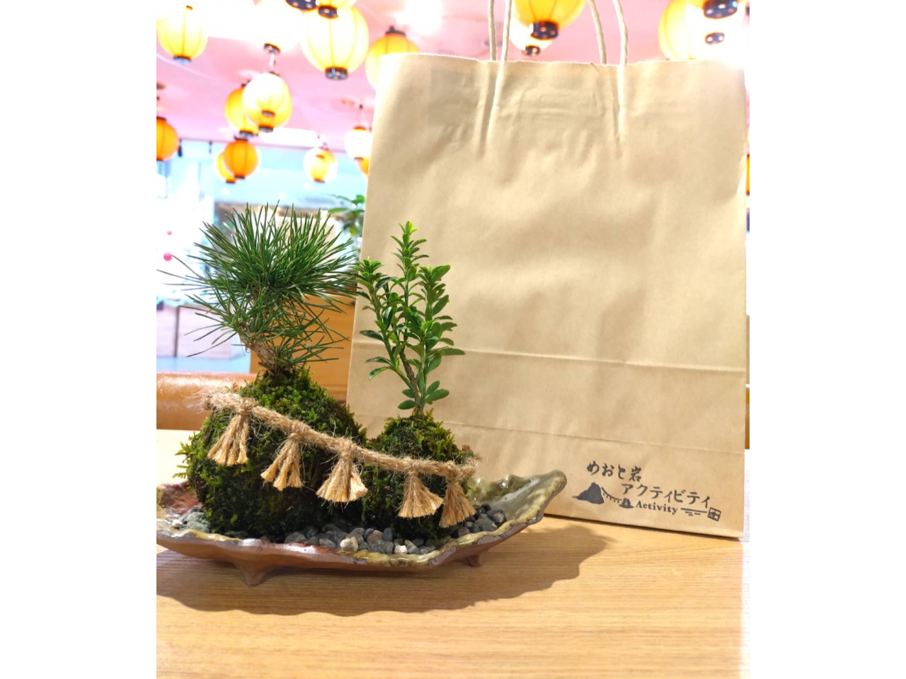 絆結びプランは、注連縄付きの夫婦苔玉を2名でお作りいただけます。
