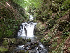 ところが清流や滝の美しさは勿論、歩行路自体が一人がやっと通れる細い道で、時々ロッククライミングを思わせるような急な登りや下り、巨岩が覆いかぶさるような順路を行くうちにだんだん楽しくなってきました。 特に2つの巨岩の間をすり抜ける「平戸の石門」、岩を割って大木となったど根性の「木賊の石割けやき」、危うく水に落ちそうになった「蜘蛛淵」など霧雨の中、少し怖かったですが、スリルもあり野性味に満ちた竜門峡を夫婦で独り占め。整備された順路を行くのもいいけれど、こんなのもいいなと思えるハイキングでした。詳細情報をみる