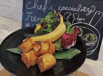 ソースには薪火でじっくり1時間半かけて炙った黒バナナが香ばしいアクセントを与えています。