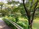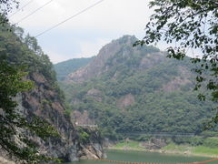 道路から見えた日向神峡です。 湖畔の緑が美しかったです。