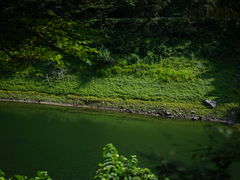 湖畔の緑とダム湖の色合いが美しかったです。