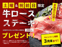 3月の土曜&祝前日限定★牛ステーキプレゼント!