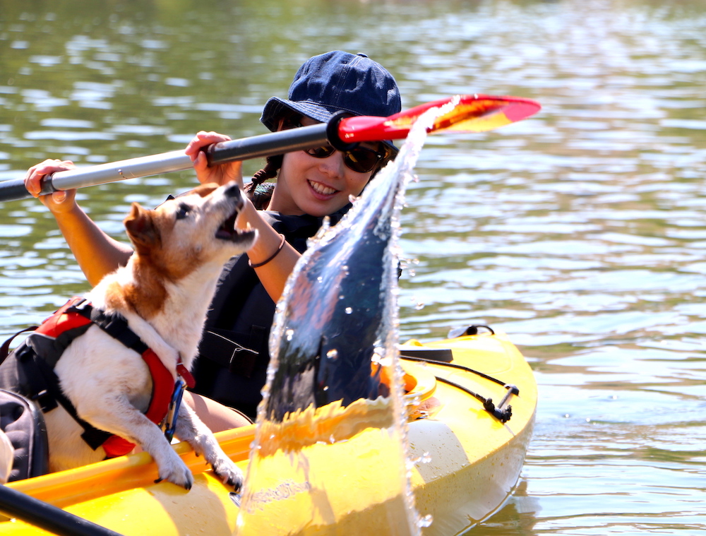 ワンちゃんと一緒に遊べるアクティビティとしてカヌーは大人気!