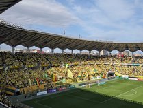 先日、ホーム開催で行われた「千葉ダービー」となる柏レイソル戦を観戦しましたが、スタジアムをジェフカラーの黄色が覆い尽くし、熱い歓声で包まれていました。フクダ電子アリーナはサッカー専用スタジアムということで、客席からフィールドが近く、とても観戦しやすいスタジアムです。