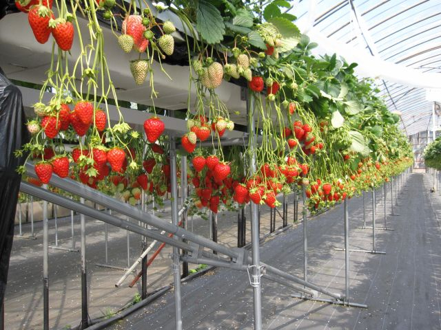 いちご狩りは、高設栽培ですので立ったまま狩ることができます。
