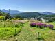 ユリの花畑の丘をリフトで上がると、目の前に薮があり、中に小さなオモチャのような家が点々とある。