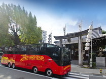 いくつかのコースがあり、車内ではバスアナウンサーが観光情報をご案内!