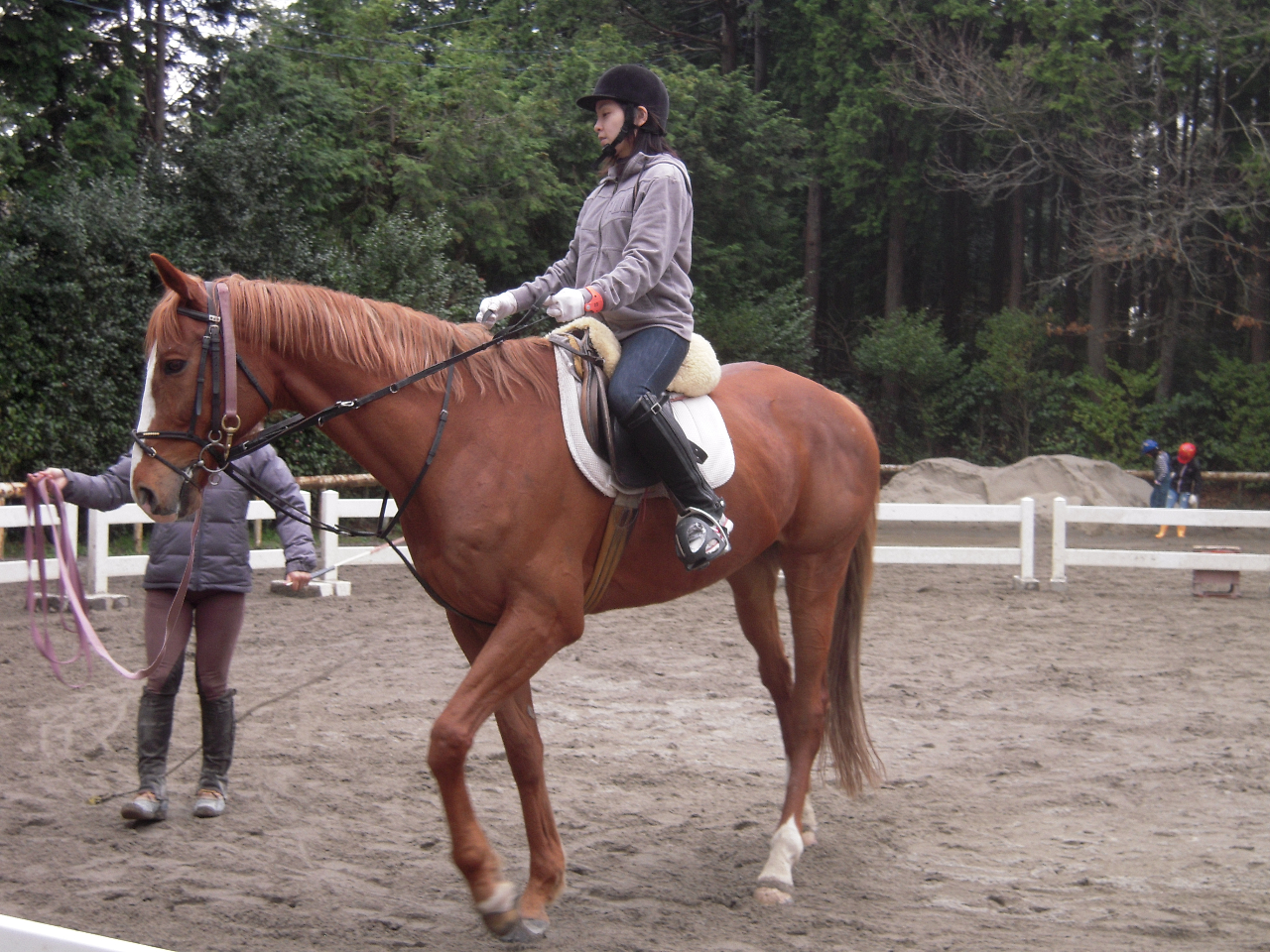 早速、馬場(馬の運動場)で体験乗馬を開始します!