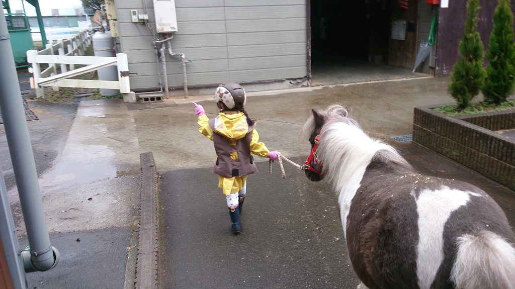 ポニーの体高は80〜100cmほど。お子様が乗ると大人の背ほどの高さに!