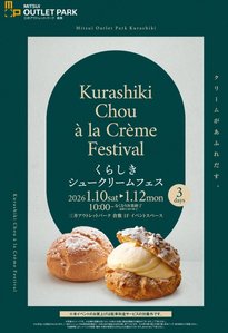 投稿時期:2026年01月10日三井アウトレットパーク 倉敷 にて「くらしきシュークリームフェス」が開催されます。地元・岡山をはじめ、全国各地の人気店からこだわりのシュークリームが大集合する毎年恒例のイベントです。バラエティ豊かなシュークリームが楽しめます。この機会にぜひ、自分の好きなお店を見つけてみて下さい。