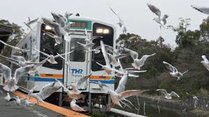 天竜浜名湖鉄道の浜名湖佐久米駅では冬にゆりかもめが飛来し、駅を賑わかせます。 浜名湖をバックに、駅舎やレール上、列車の周りを舞い飛ぶゆりかもめの大群は壮麗な眺めです。