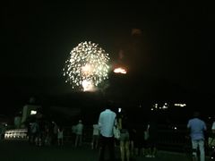 千円で勘太郎の湯に入り、出てきたら何やら人だかりがいっぱいです。大文字焼きが始まるとのこと。超ラッキーで橋の上で撮りました。