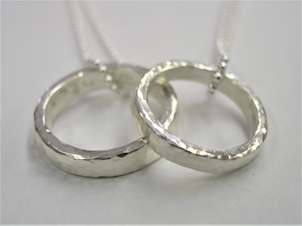 キラキラハンマートーン仕上げ。リングをネックレスにする楽しみ方も!