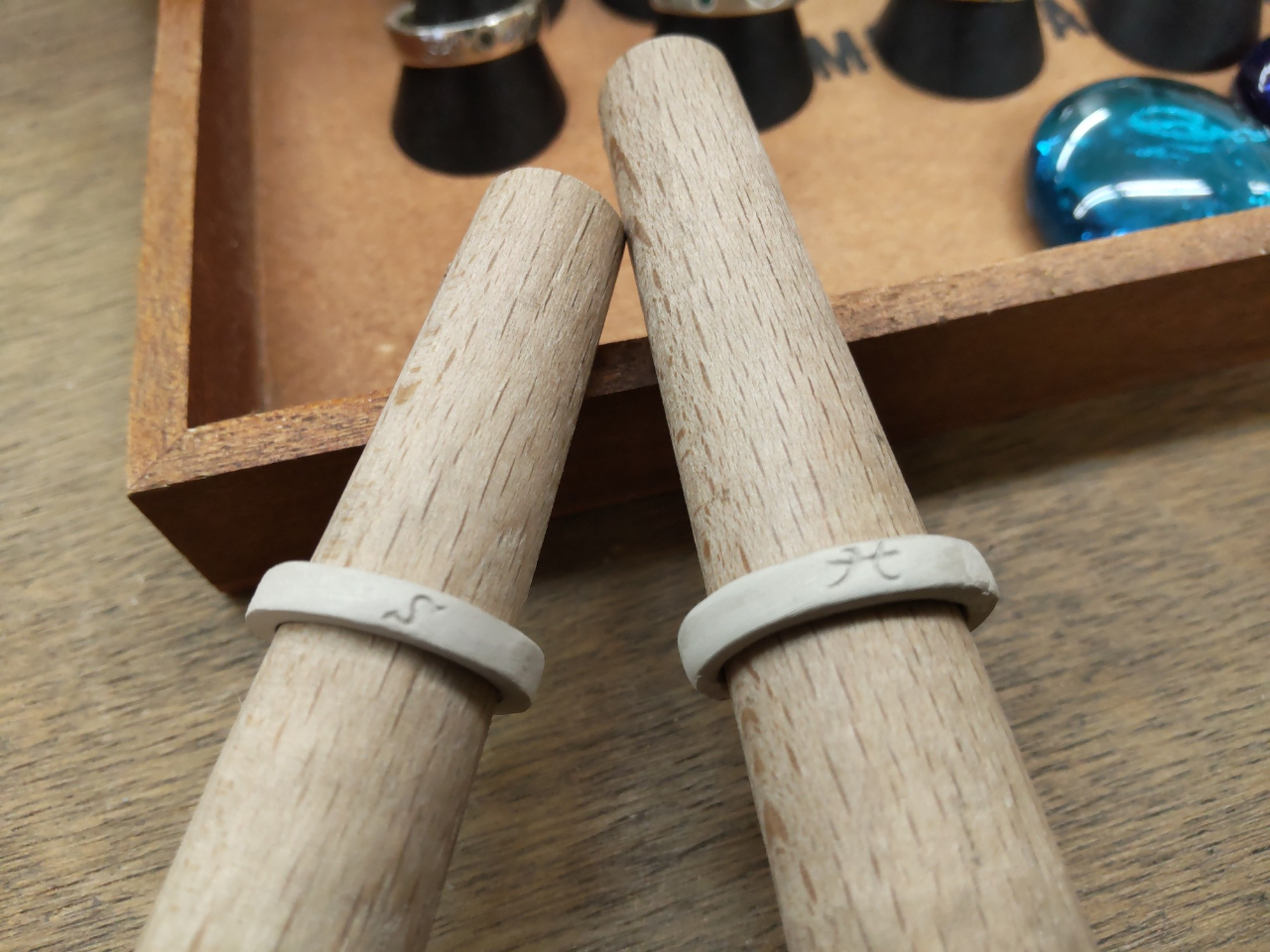 →99.9%純銀になる銀粘土でリングなど形の成形です。
