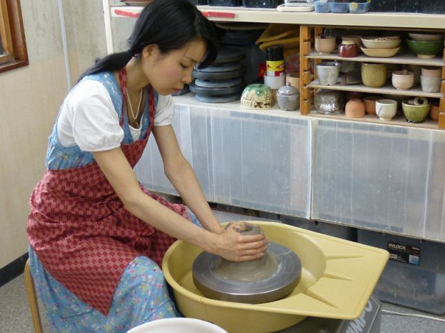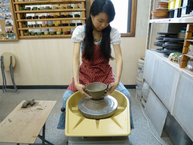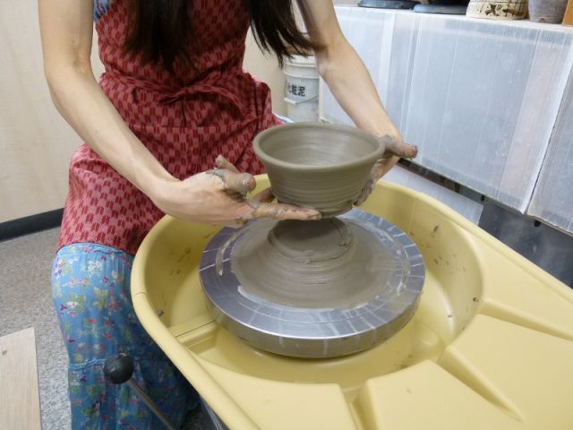 電気で回る電動ロクロを使った人気の体験陶芸のコースです♪