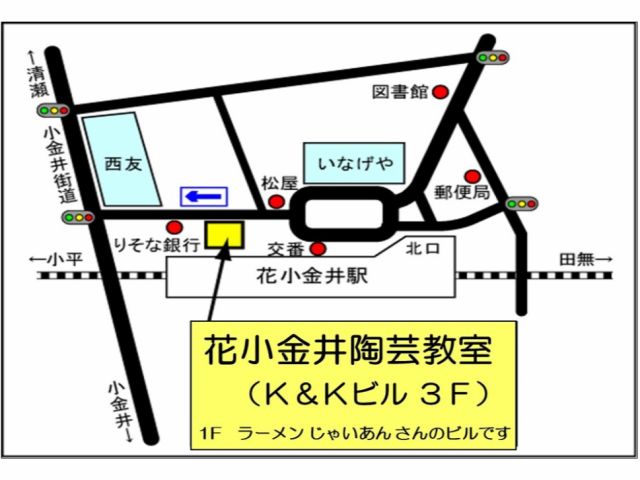 | 集合場所 | 〒187-0002 東京都小平市花小金井1-1-10 k&kビル301 花小金井陶芸教室 |