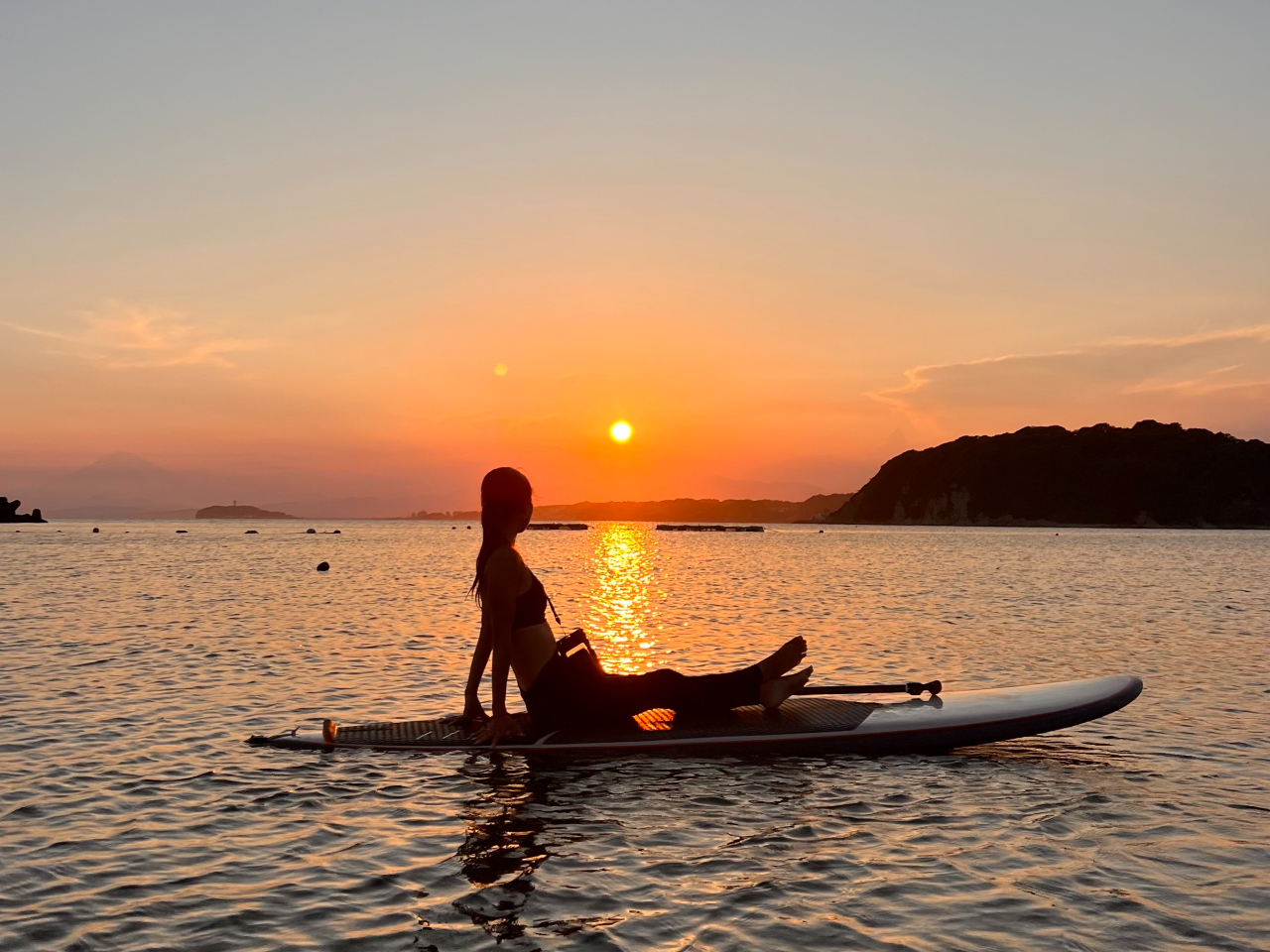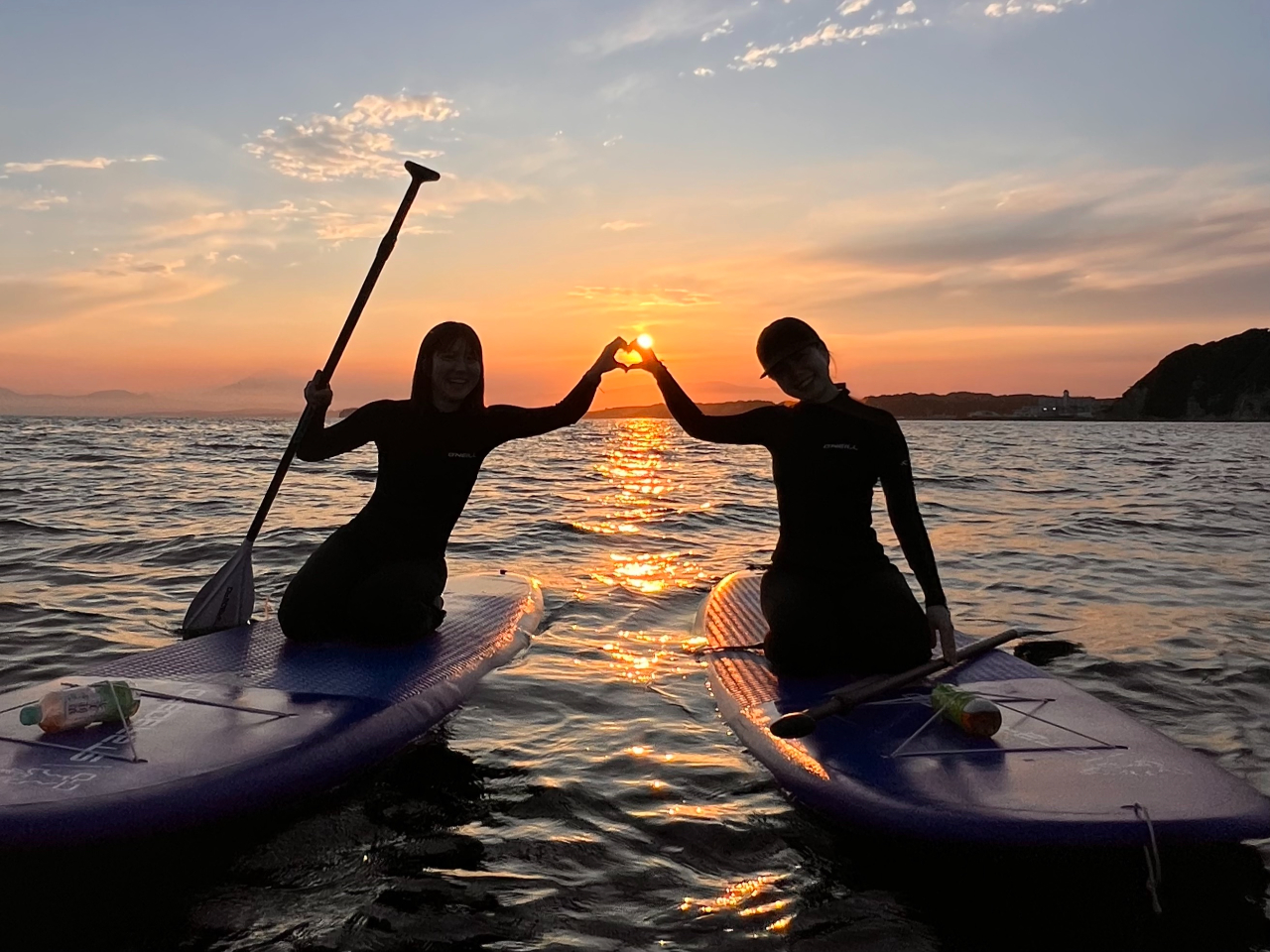 サンセットSUPコースでは綺麗な夕日の中をSUPでクルージング。