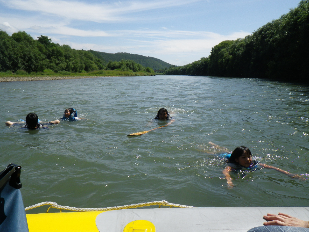 →小さなお子様は元気に遊んで欲しい!!そして保護者様の心配を少しでも無くしたい。そこでお子様専用のライフジャケット、カッパの上下を各サイズご用意しております。またガイドは急流救助活動、応急救護手当ての認定を受けております。お子様をどんどん遊ばせて下さい。いつもとはまた違う笑顔を見ることが出来るかもしれません♪ガイドがしっかりとお子様をサポート致します。