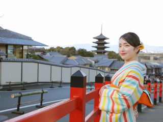 手ぶらで来店OK!京都の町並みを着物で散策して、二寧坂にある大人気のお茶漬けバイキング「阿古屋茶屋」200円割引券付き♪ カップルで京都デートや家族旅行のお客様にも、是非おススメです!