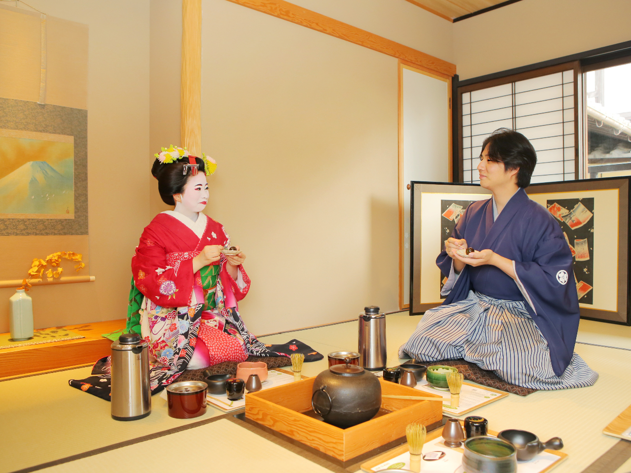 【京都・清水寺】「京都で唯一! 舞妓姿で茶道体験出来るプラン」 舞妓(サムライ)・カップルでも抹茶体験をお楽しみください