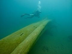 山に囲まれた湖にて、ダイビング♫