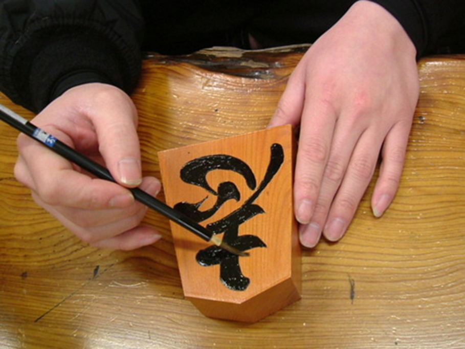 書駒教室では三寸から四寸の駒にお好きな文字を書いて、飾り駒を作ります!伝統工芸品創りに触れる貴重な体験です♪伝統工芸