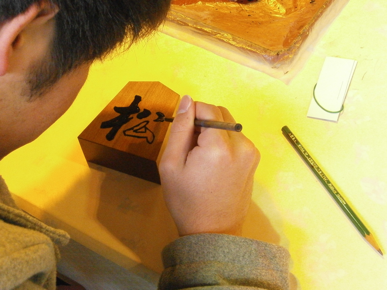 書駒教室では三寸から四寸の駒にお好きな文字を書いて、飾り駒を作ります!