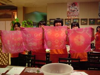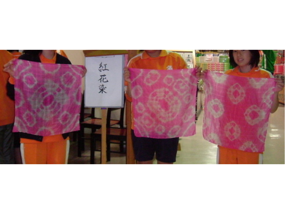 スカーフ程のハンカチ一枚を口紅のもとになる色素「紅花染料」で染めて、自分だけのハンカチを作ろう♪染料にいれる角度や浸す長さで模様や色合いが様々に変化します♪どんなハンカチができるのかは当日のお楽しみ!