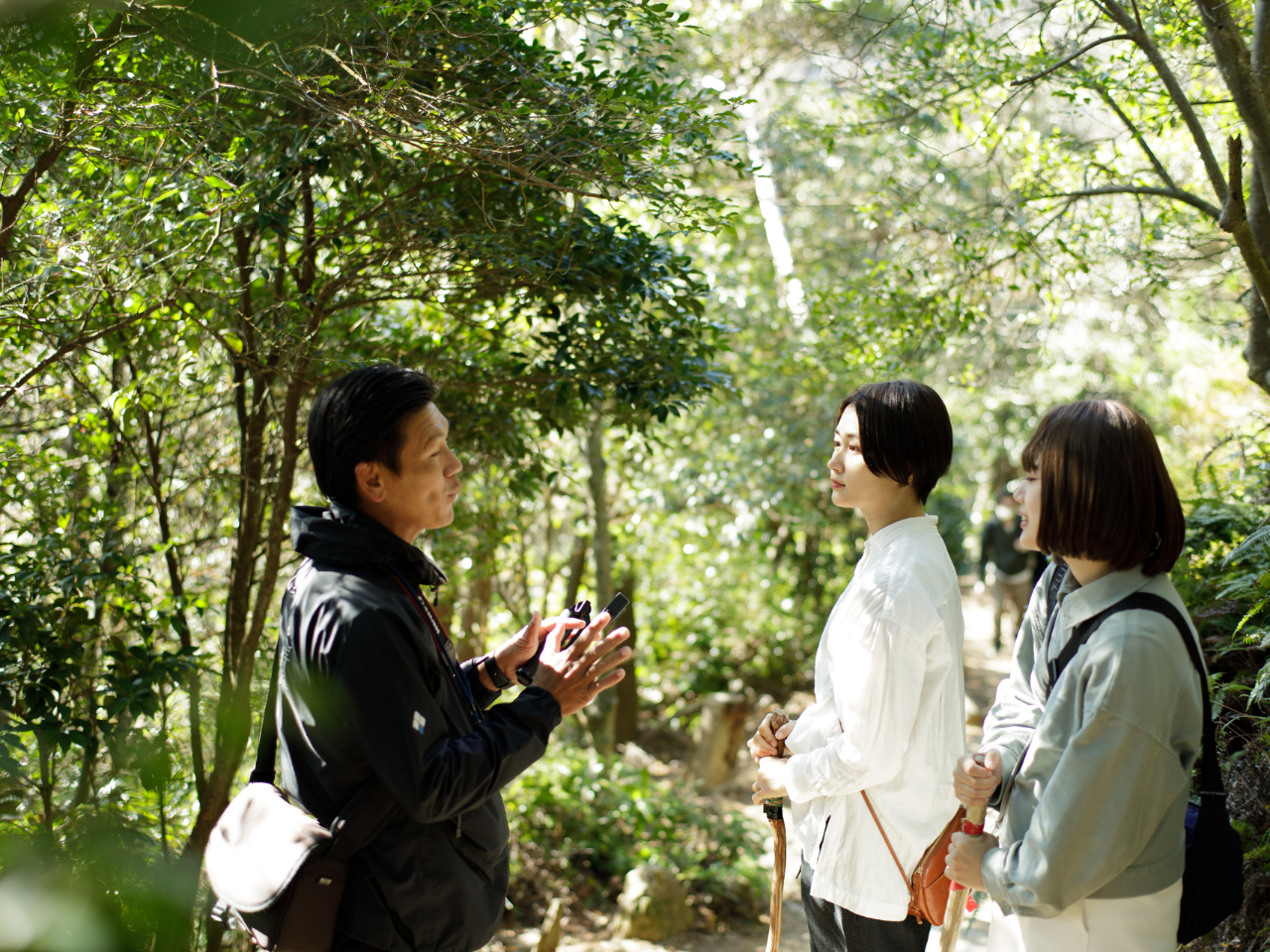 登山道中は、宮島・弥山にまつわるガイドや友達に言いたくなっちゃうような豆知識をお教えいたします。時にはクイズ形式でお客様との「会話」を大切に一組一組丁寧に「おもてなし」させて頂きます。登山していることを忘れるぐらいあっという間に楽しく登れます。