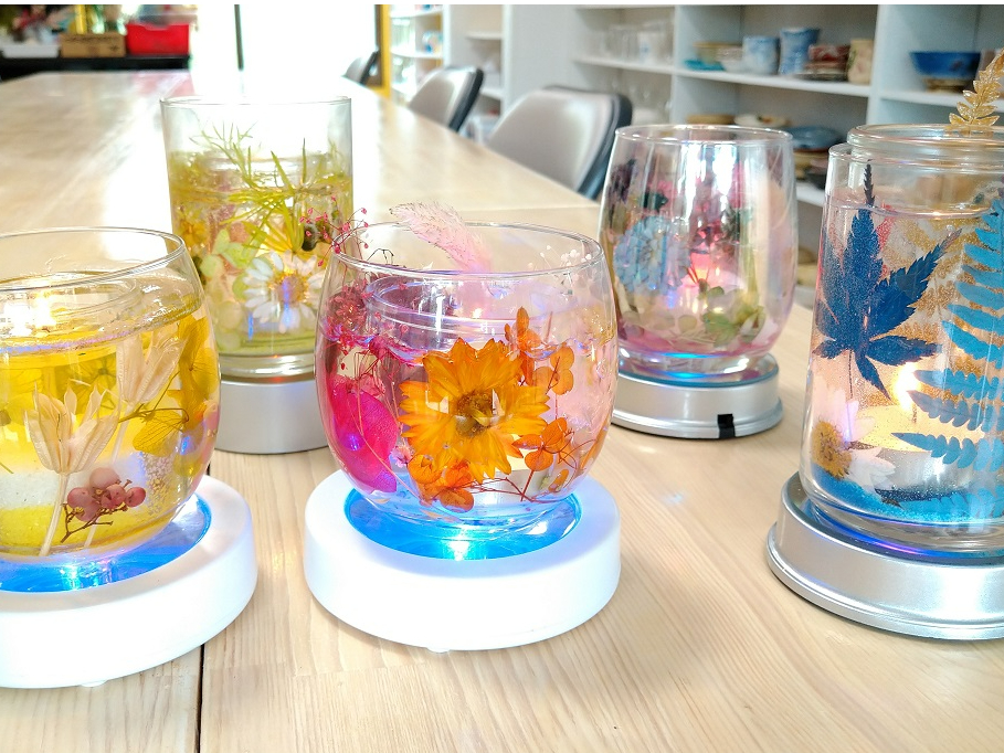 【ジェルキャンドル体験・名駅徒歩4分!】透明感のあるジェルキャンドルと植物で癒し体験しませんか?選べる花材は約300種類!簡単キレイ!伝統工芸作家が教えます。