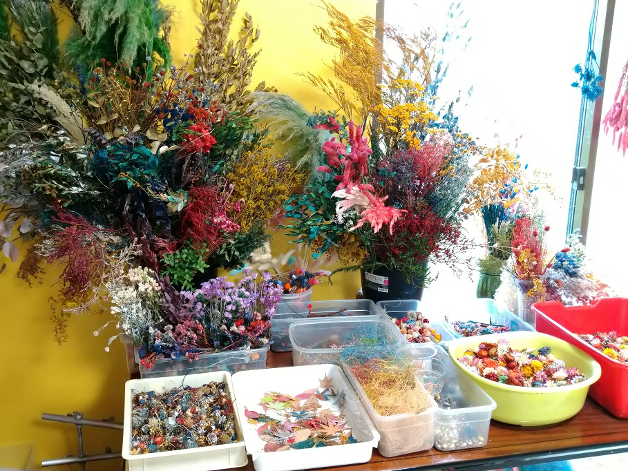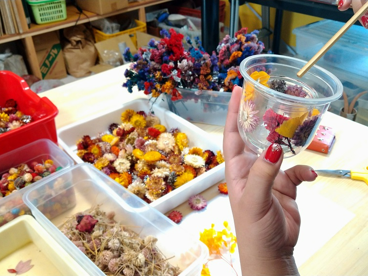 *お花も当工房でドライフラワー加工しており、いつも沢山の花材が用意してあります。*お子様でも少し不器用と言われる方もこの体験では綺麗にできますよー。