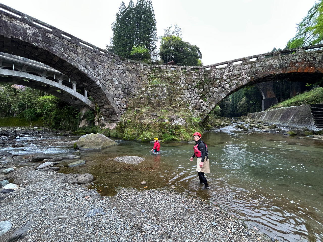 熊本県央に位置し、石橋の町として知られる美里町を流れる清流 津留川(つるがわ)で川流れや飛び込みなどの川あそびをしながらゴールを目指すリバートレッキング体験です。