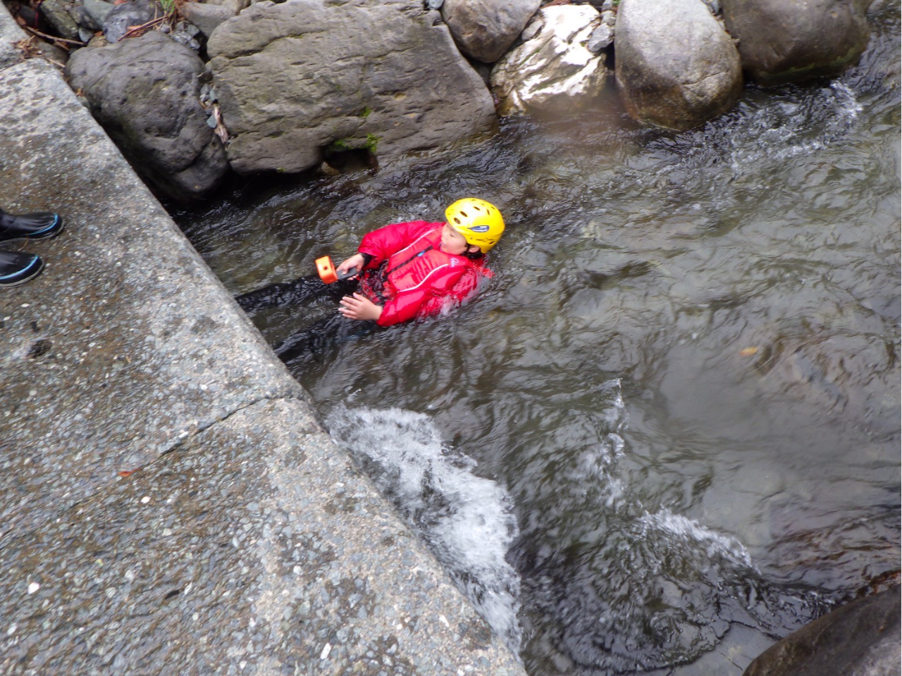 小学1年生から参加できるイージーコースでは程よい流れを全身に感じながら、自分の力でクリアして進みます。