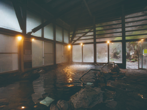 体験後はウエットスーツのまま温泉の脱衣所へGO!「佐俣の湯」温泉入浴付きです。