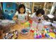 色とりどりのガラス板に好きなパーツを組み合わせて乗せ、釜で溶かして作る体験♪