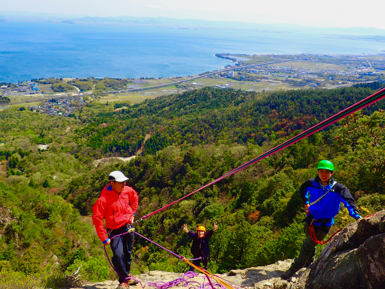 クライミングゲレンデとしても有名な、滋賀県大津市の獅子岩で実際にフリークライミングを体験できます。