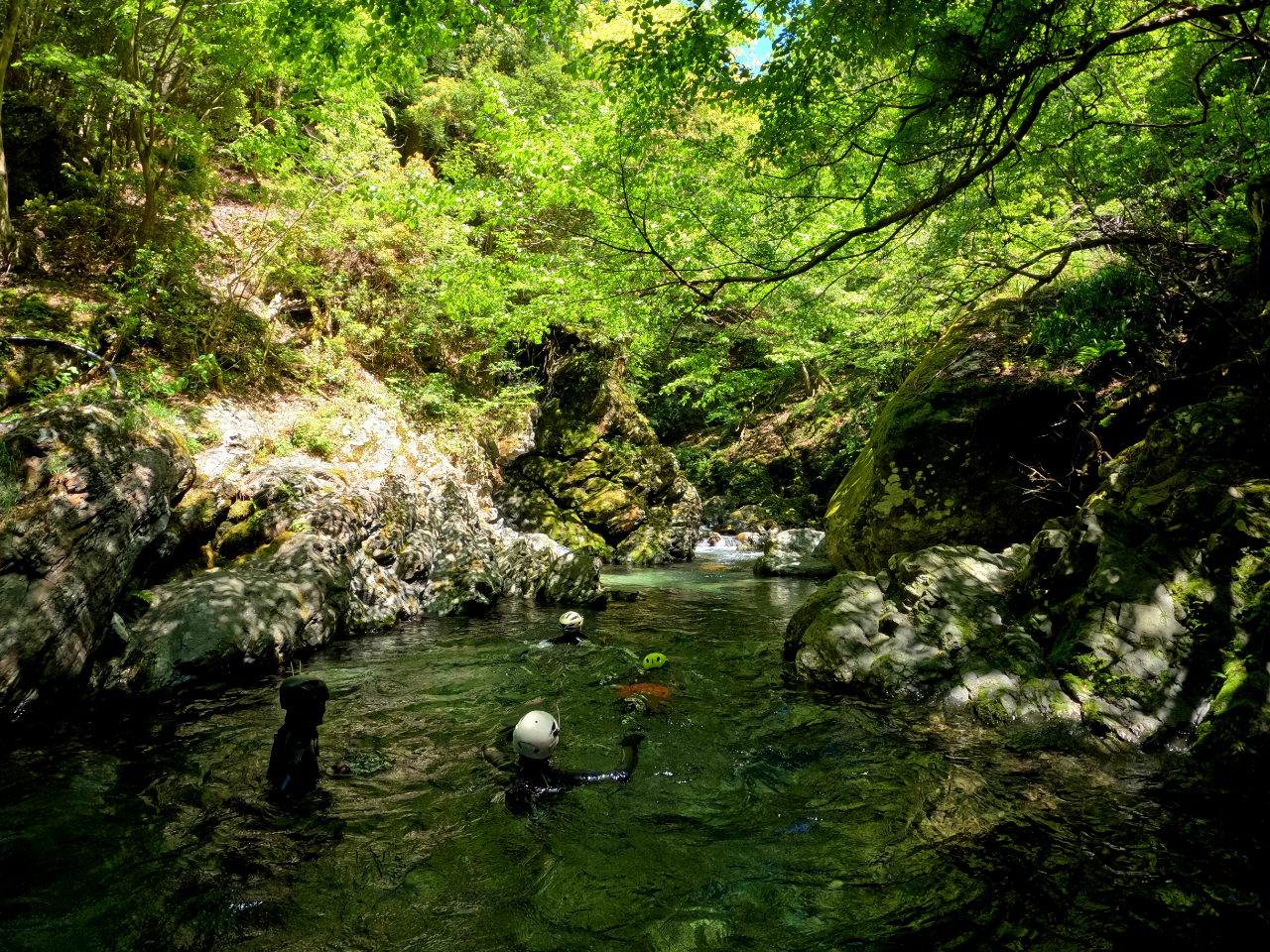コースの中に小滝や天然のプールなどが点在し、小滝登り、飛び込み、水泳、潜水まで満喫できます♪