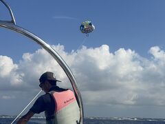 沖縄の青い海を見下ろす最高のロケーションで空中ブランコ体験☆パラセーリング
